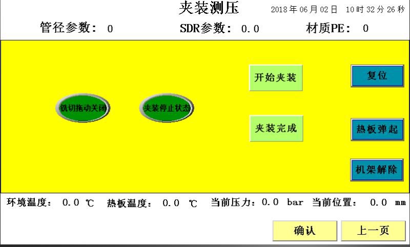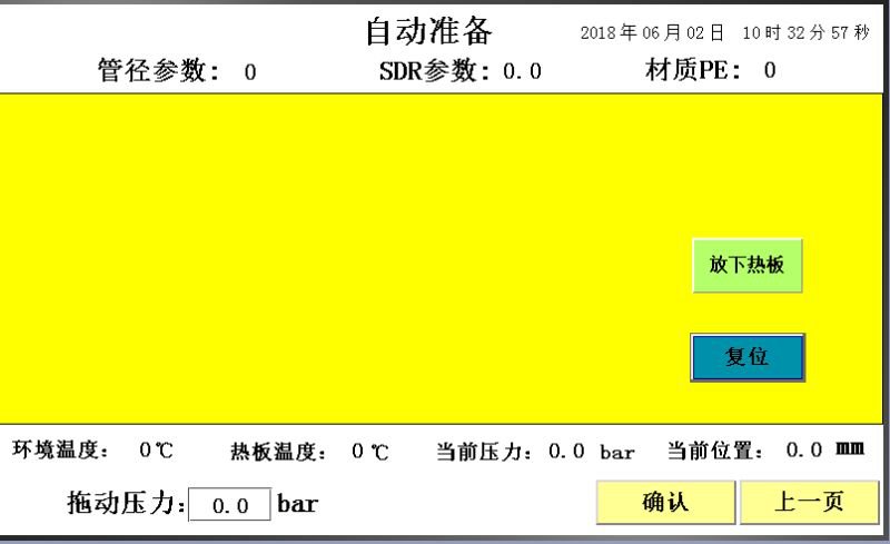 如果热板温度达到指定温度后(PE80为210℃,PE100为225℃),点击“自动开始”,系统自动进入翻边,渗热,切换、冷却过程。
