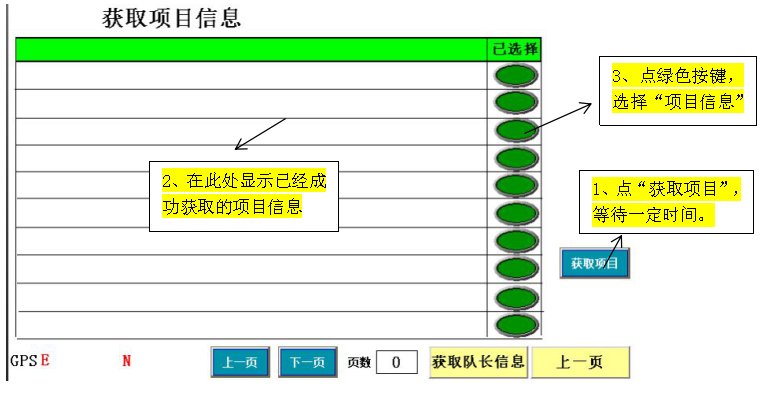 注意:如此下拉列表中没有施工人员所要的施工项目,需要点击“下一页”后翻页,再重新点“获取项目”,寻找需要的施工项目,进行施工项目的选择。