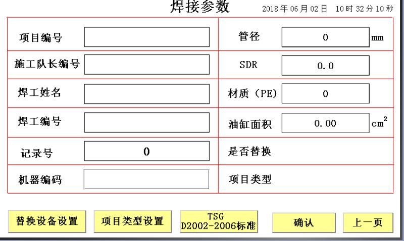 根据实际管材设置焊机焊接参数,并选择“项目类型”,例如:我们要焊接DN250,SDR17.6,PE80的PE管,点击250,SDR17.6,PE80形成的焊接参数自动显示在屏幕下方。